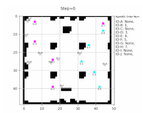 该算法在正常情况下使用基于搜索的路线规划,在AGV相互靠近时,局部使用强化学习AI(通过强化学习获得的防撞措施),从而实现动态AGV之间的防撞。