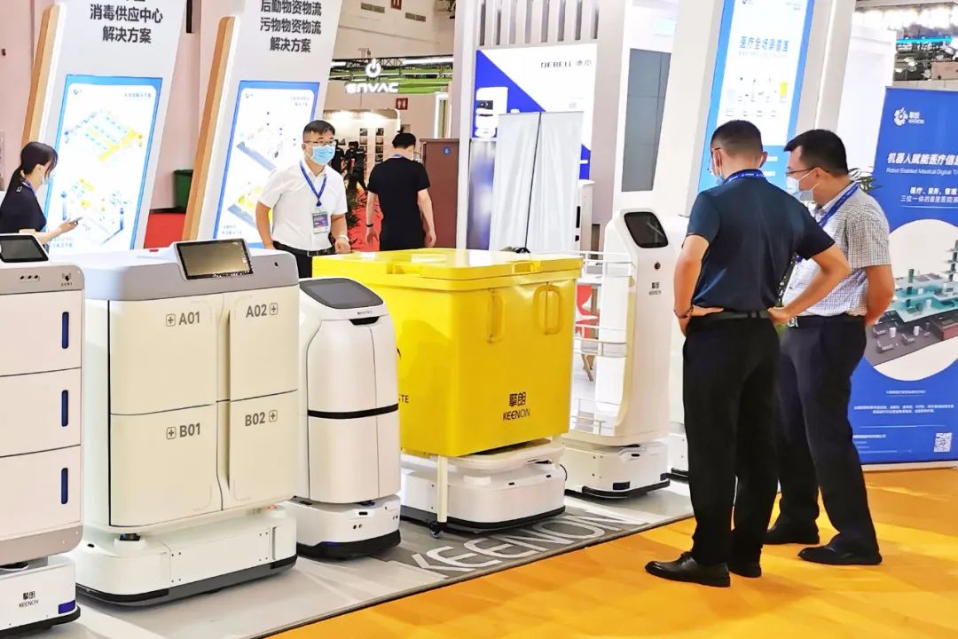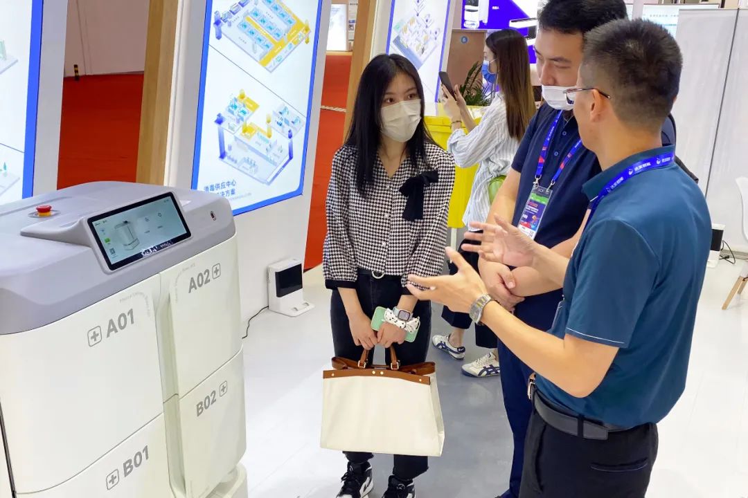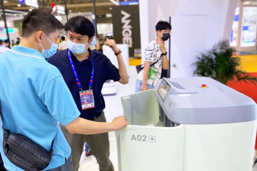 同时,展位中还有医疗配送机器人M1系列及M301、自主移动式消毒机M2等众多新品,丰富的产品组成的家族矩阵可有效覆盖院内90%以上的物资运输需求,实现精准送达,有效提升医院物流传输效率。