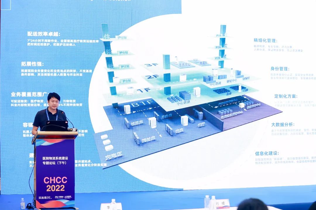 当下医院的物流运输具备需求庞大、物资品种繁杂、安全要求高、时效性强、院感防控严、物资管理需要可追溯等痛点,智慧医院需提升物流系统的运行效率和智能化程度。针对上述痛点,擎朗智能依托旗下医疗服务机器人产品矩阵及自研智能管控平台,在展会现场重磅推出数智化医院解决方案,受到湖北卫视等媒体的广泛关注和报道。擎朗智能医疗部产品总监李晗发表《后疫情时代数智化医院解决方案》相关演讲,对后疫情时代医院建设的趋势、擎朗医疗数智化医院解决方案和案例进行分享,并对人工智能技术在医疗行业中应用发展发表观点与看法。