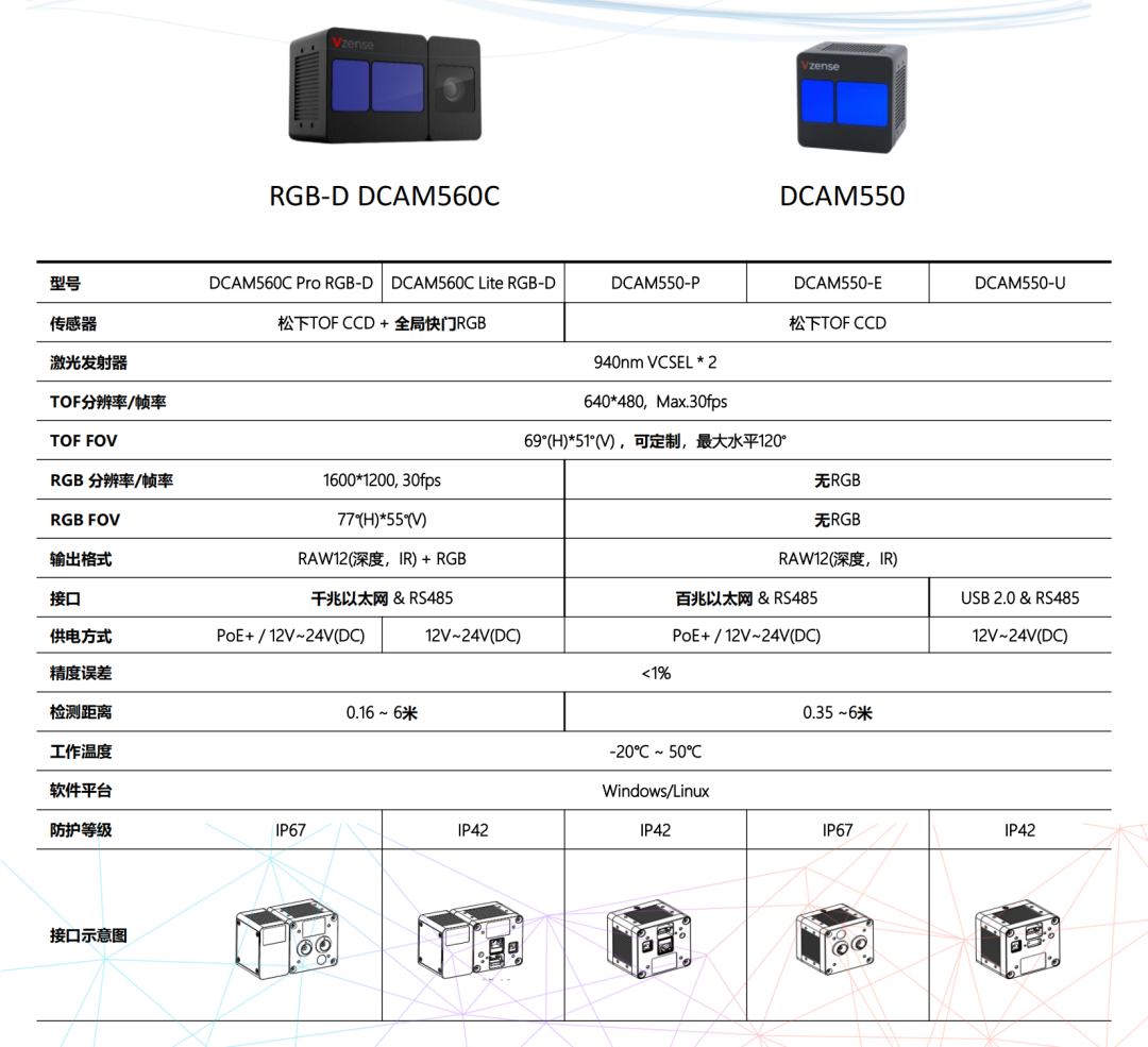 | 标准化产品 | RGB-D ToF 模组 | ToF工业整机 |