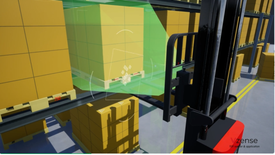 TOF 3D深度相机可以精准识别出仓库库位情况,从而辅助AGV实现精准定位和取放货;同时,结合识别算法,起到电子围栏的效果,当有人员进入区域时,进行报警提醒。