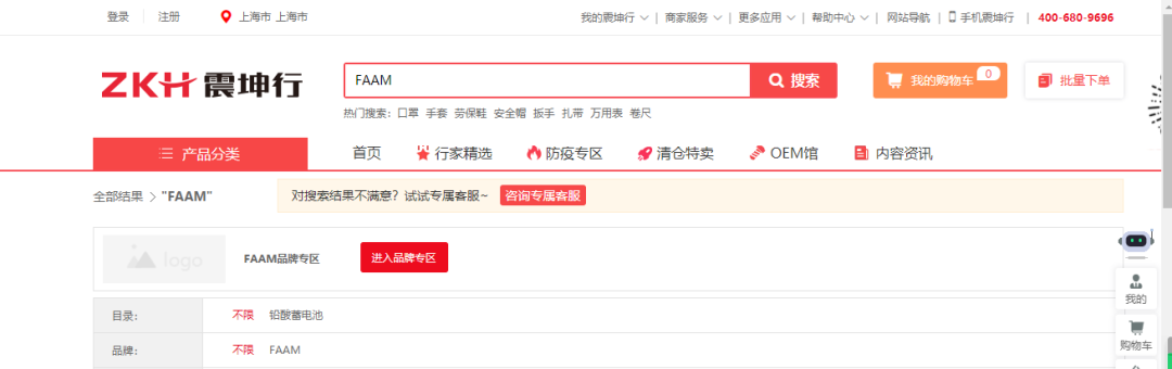 重要消息:FAAM电池HFP系列在震坤行工业超市(震坤行)上线,可提供线上购买渠道!