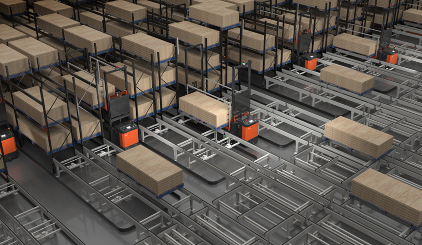 家居和纺织行业长物料窄巷道无人化楼库密集存储盒子:针对家具和纺织行业,狭窄货架空间的长物料的搬运一直是难点,木牛流马研发的窄巷道堆高移动机器人,专有的属具装置,灌装标准化的管理系统,实现楼库密集存储的无人化转化。