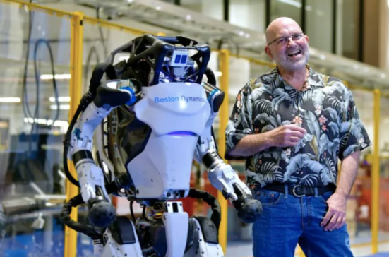 波士顿动力公司创始人马克-雷伯特与Atlas人形机器人站在一起。|来源:Associated Press