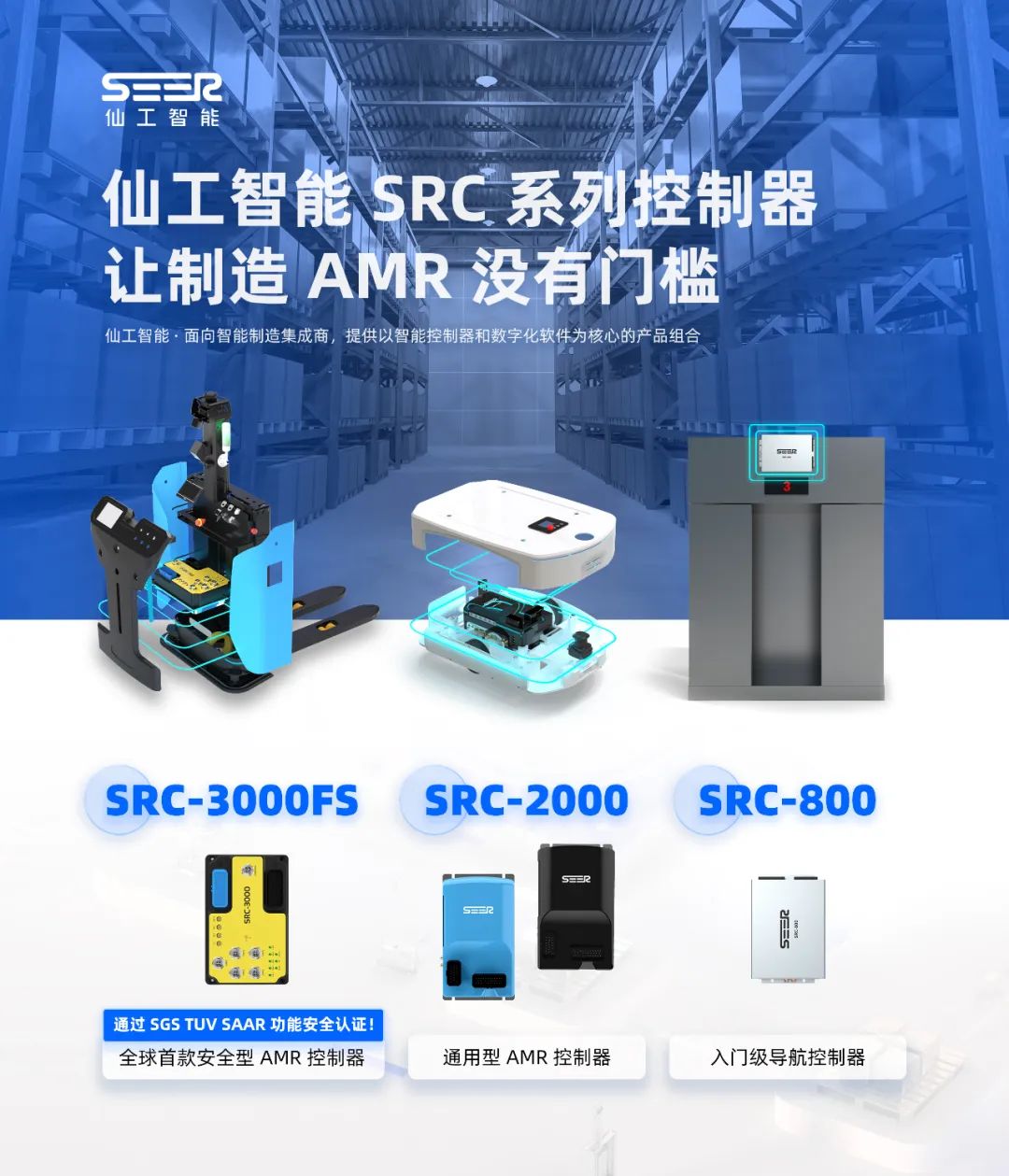 在展位中,全球首款 AMR 安全型控制器 SRC-3000FS 再次成为关注焦点,作为全球首个且唯一通过 SGS TüV SAAR 功能安全认证的控制器,精致的外观更抓人眼球,深析性能更彰显了仙工智能的技术实力。