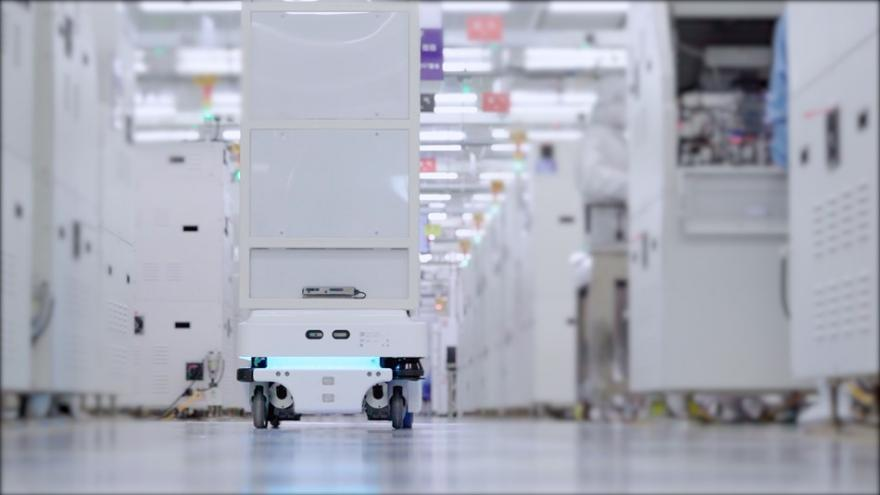 【图:某韩国电子元件制造商天津工厂部署的 MiR100】
