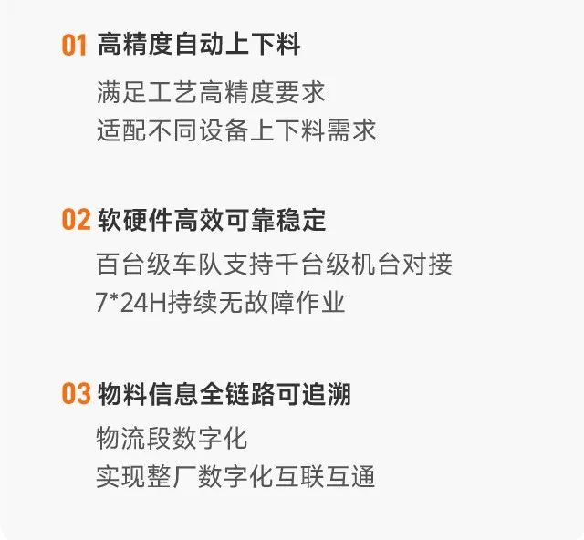 设计打造了包含内核、整机、云端的全产品线,形成了以自主核心技术、领先产品及系统解决方案为一体的自主移动作业机器人产业全价值链。现面向工业4.0升级中的制造业,提供无人化与智能化的室内外工厂智慧物流解决方案。已在3C、汽车、电力、医药、新能源等多行业龙头企业广泛应用。