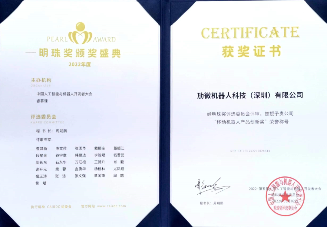 近日,“2022 CAIRDC 明珠奖 · 工业机器人产品创新奖”揭晓,劢微机器人自主研发的新形态无人叉车「劢喆伦α1」凭借创新的设计理念、强悍的产品性能,脱颖而出,获此殊荣。