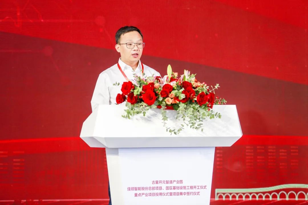 镇党委书记谈晓华在致辞中表示,佳顺智能总部基地项目在常熟奠基,充分说明了佳顺智能对常熟投资环境的高度信任,希望佳顺智能以此为崭新的契机,高效统筹生产经营和项目建设,力争早日实现竣工投产,赢得更大的行业话语权,助力古里镇卡位智能机器人新赛道,发挥行业优势,深挖合作潜力,打造协作共鸣的制造生态圈。常熟市各相关部门将更多地关心和支持佳顺智能的发展,全力以赴做好后续服务,全力推动项目早开工早见效。