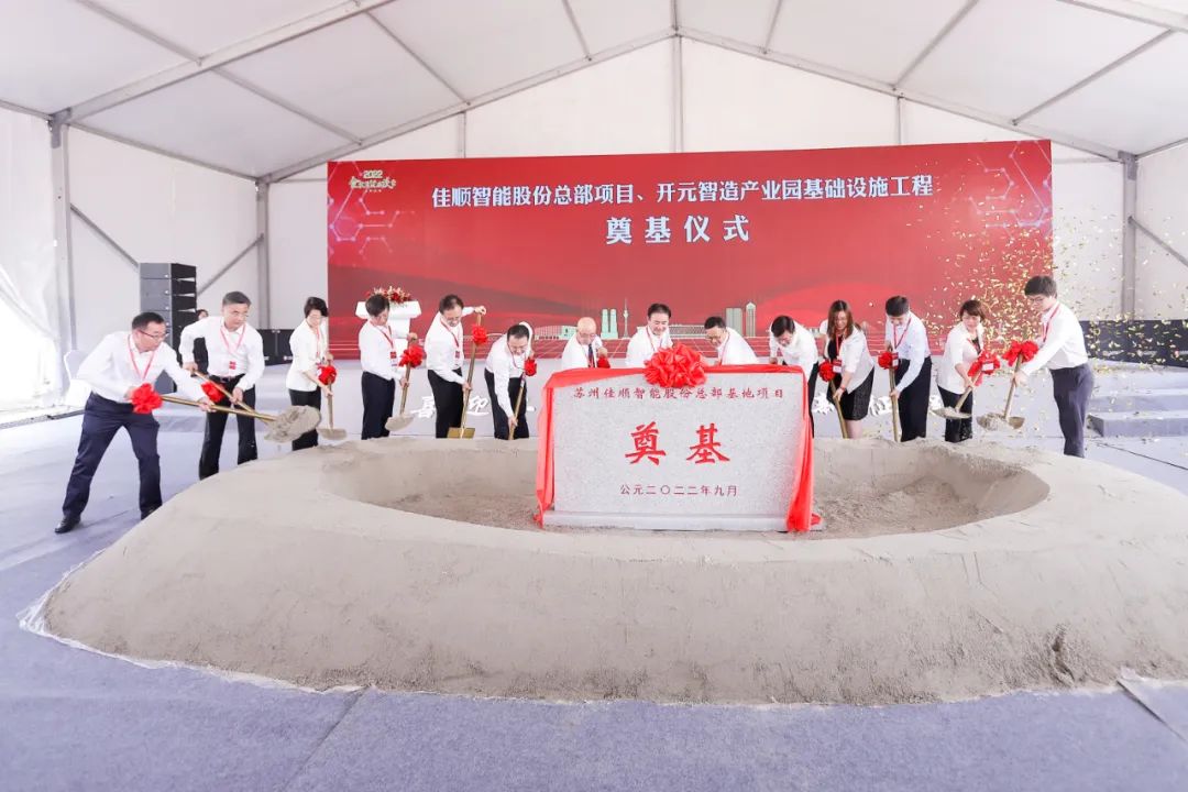 9月29日上午,佳顺智能总部基地项目奠基仪式在江南福地常熟举行。常熟市委常委、副市长万晓军,市商务局局长徐国强,市科技局局长顾晓丹,市人社局局长陈晓宇,市发改委副主任殷伟,市工信局主任科员顾益星;古里镇党委书记谈晓华,古里镇党委副书记、镇长石君,古里镇人大主席顾小燕,古里镇党委副书记、政协工委主任赵红芳,相关分管领导以及职能部门负责人,各村(社区)负责人出席了奠基仪式。经过一年多的酝酿、交流、设计和筹备,佳顺智能新总部基地,终于在美丽的常熟破土动工。