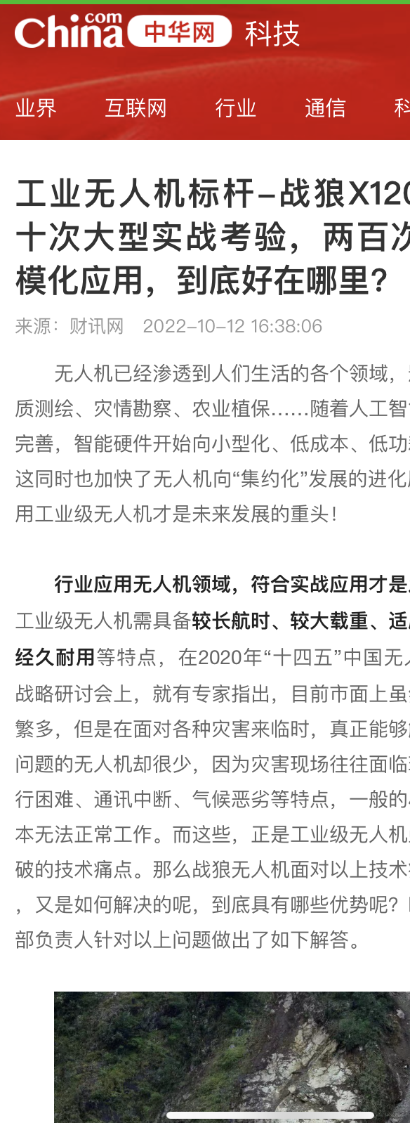 成都时代星光科技有限公司依托全栈自研的“新一代战狼智能无人机”,不仅入围工业和信息化部“人工智能产业创新任务揭榜挂帅入围单位;近日,战狼无人机也凭借在应急安防和国防军事等领域的“骁勇善战”获得中国经济导报、中国网、中华网、环球网等中央新闻媒体的争相报道,以下是报道的全部内容。