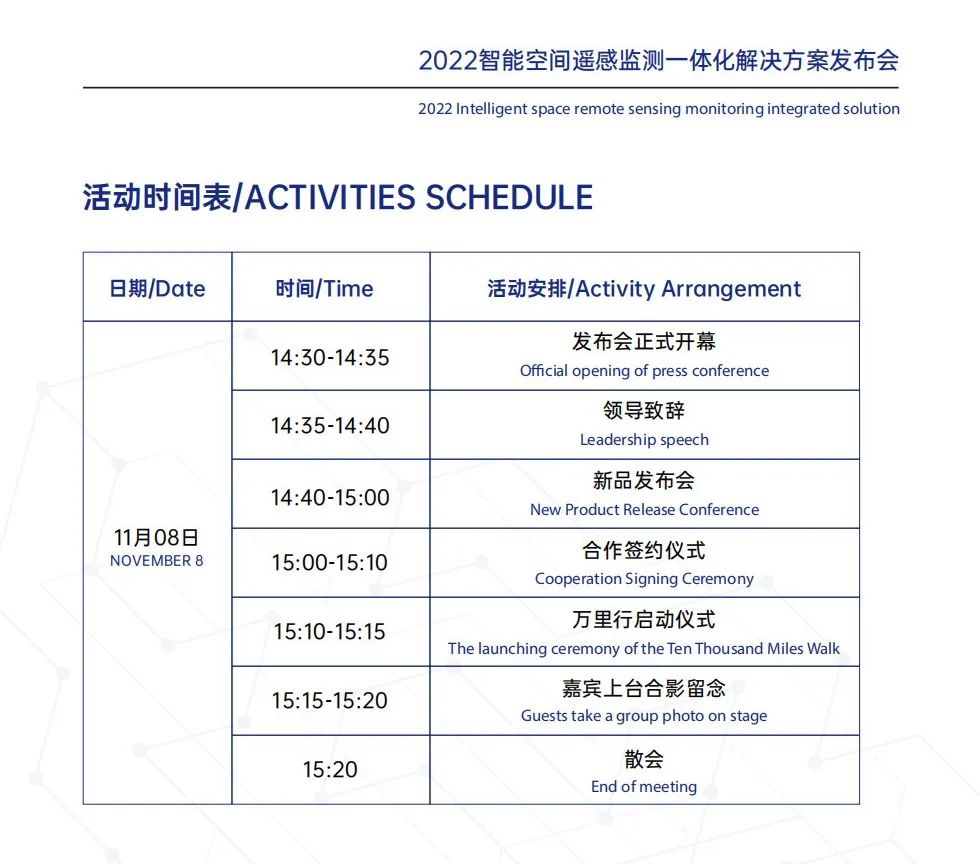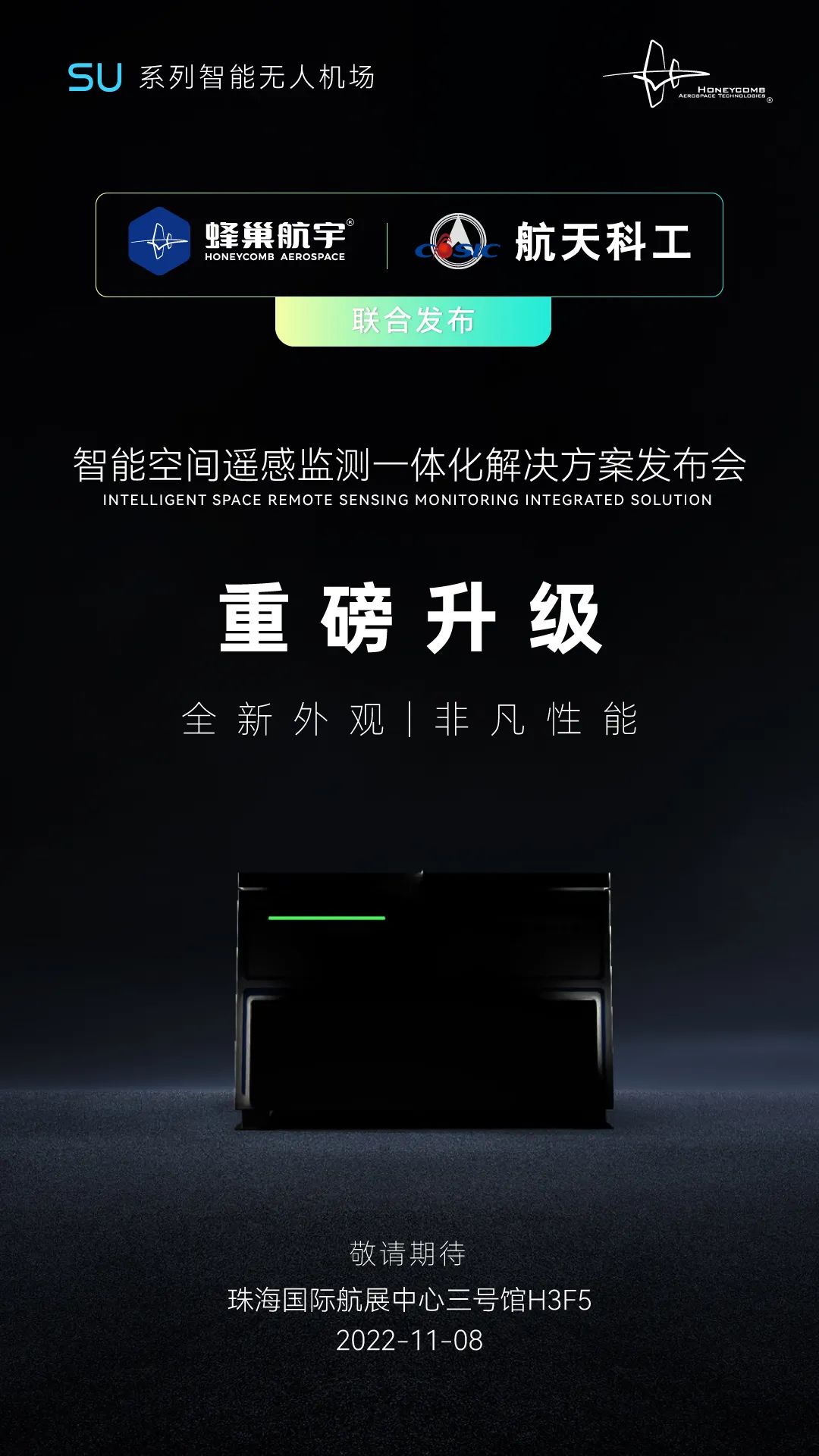重磅新品即将来袭,2022年11月8日在珠海航展蜂巢航宇科技(北京)有限公司和航天科工海鹰集团有限公司将联合举办“智能空间遥感监测一体化解决方案发布会”。在本次发布会上,我们将发布多款重磅新品与智能创新技术、解决方案,以及高级研发专家将分享无人机数字化转型、智能升级的实践与探索,共同助力行业创新发展。