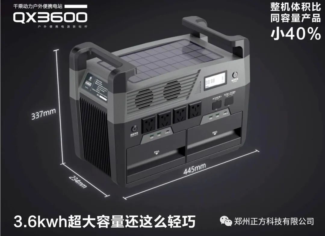 而正方科技推出的千乘动力QX3600电源产品最令人感知明显的地方,就是充电速度、电源的重量和体积。得益于固态锂电池高能量密度的特性,这款户外电源相对于其它传统电源产品,整机体积缩小,重点减轻,极大降低了出行携带的负担,大家出去玩的时候也可以更从容轻松。