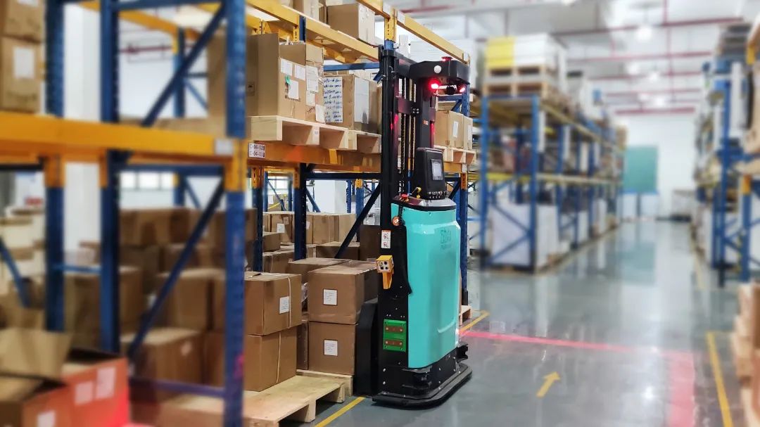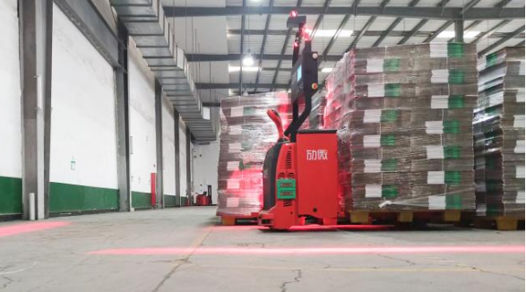 劢微为该工厂提供兼具成本与性能优势于一体的智能物流解决方案,以“堆高式无人叉车”为硬件载体,该车兼具载重与举高功能,加装行业通用属具V行货叉,保证物料搬运安全。与此同时,劢微RCS调度系统规划全场最优路径,WCS设备控制系统对接厂方WMS,实现整场物流智能化。