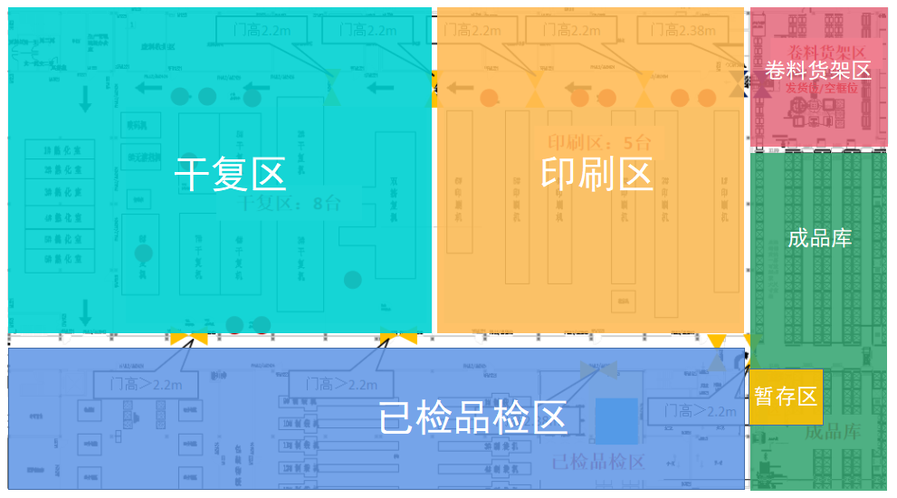 客户是一家生产食品包装袋、塑料包装袋、铝箔袋的企业,为实现智能物流升级,联手劢微导入整场智能物流解决方案,打造无人化、柔性化智能工厂。实施区域涵盖卷料区、印刷区、干复区、已检区、成品区、原料区等。