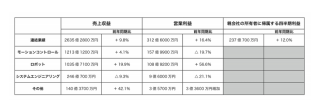 按部门划分,运动控制业务的营业利润为157.99亿日元(下降19.7%),收入为1213.12亿日元(增长4.1%),机器人业务的营业利润为108.92亿日元(增长56.6%),收入为1035.71亿日元(增长19.9%)。 在系统工程业务方面,收入为24,607百万日元(同比下降9.3%),营业利润为960百万日元(同比下降21.1%)。