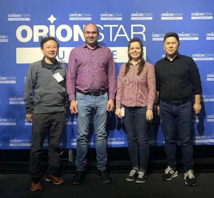 BBB展会上猎户星空高级副总裁童宁(左一)与欧洲合作伙伴的合影