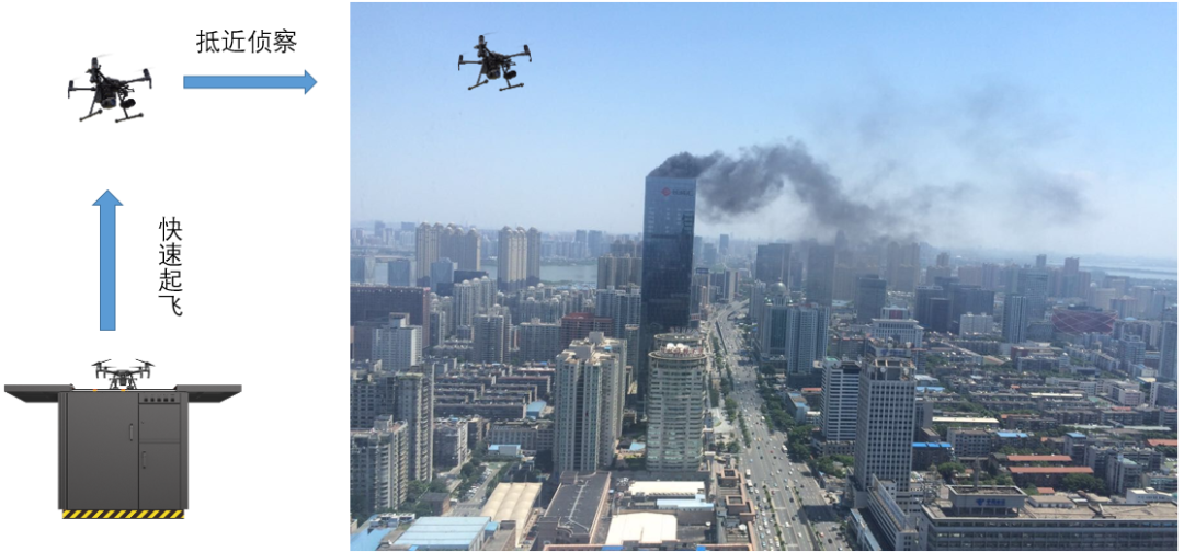被作为“侦察兵”的自动化无人机巡检系统还可以提升侦查的效率,第一时间赶到现场提供实时情况,以便指挥者作出及时的决策,并通过机载喊话器进行现场喊话和引导,可以有效的规避人员伤亡。