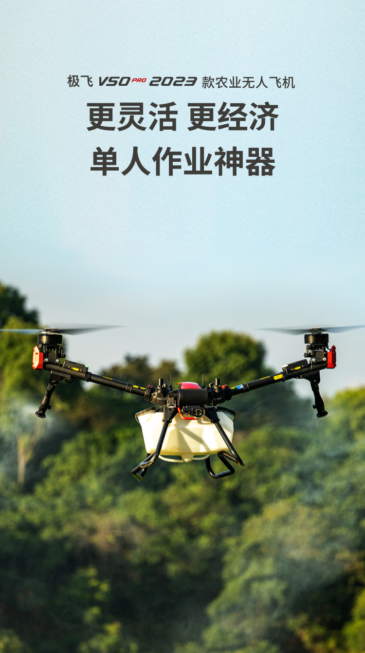 其中,极飞 V 系列农业无人飞机凭借革命性的折叠双旋翼结构,集智能测绘、精准喷洒和高效播撒于一体,给予用户更灵活、经济的作业体验,尤其成为了小散地块、山地丘陵区用户的首选机型。那么:新一代的极飞 V50 Pro 农业无人飞机,是如何再次实现「灵活」与「经济」的双重突破呢?