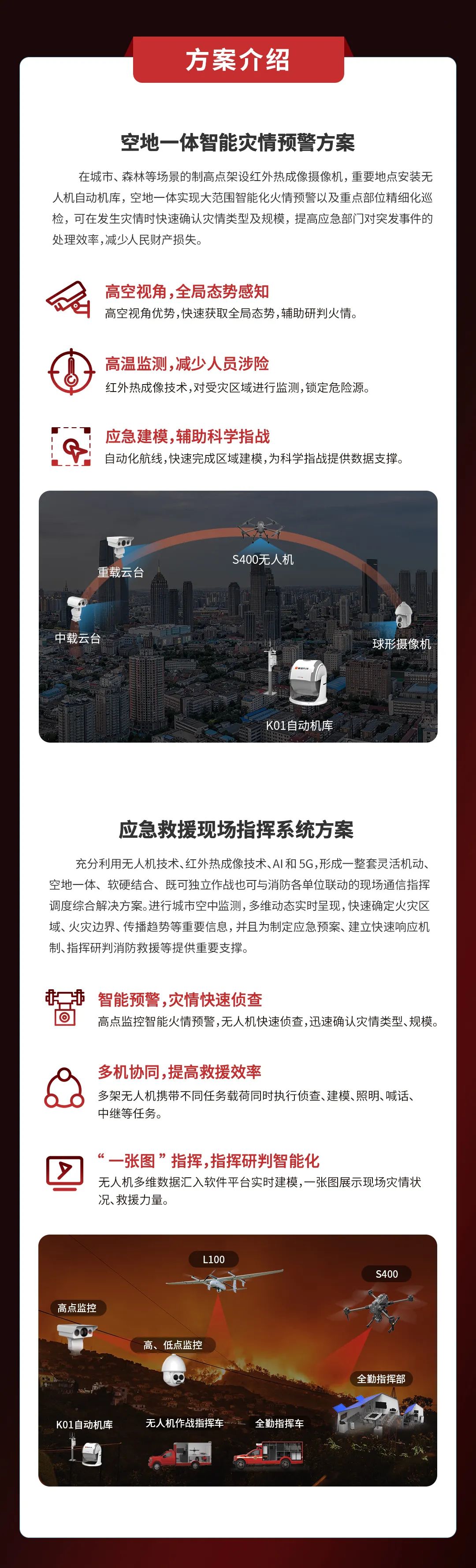 2019年,普宙科技为某市支队建设天地一体化预警侦察系统,包括55套无人机、4个点位高点监控以及配套软件平台。实现无人机、高点监控视频汇聚,自动火情报警等功能,有效提升了支队火情预警能力。