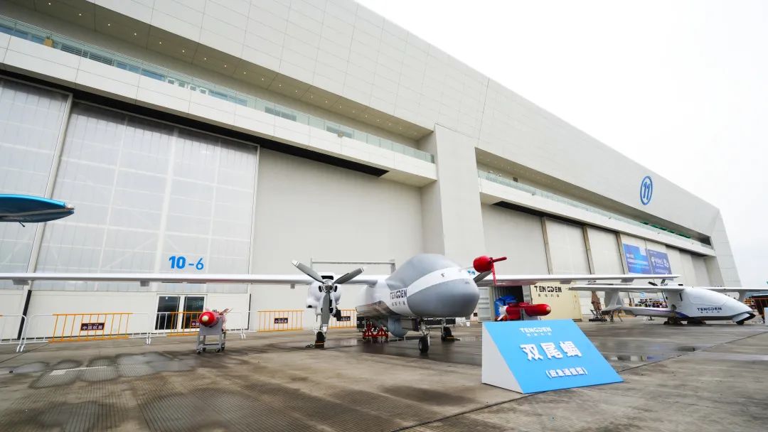 第十四届中国航展十号展厅的室外展区,腾盾科创旗下双尾蝎、混江龙、没羽箭等系列高端智能飞行器真机震撼亮相。其中双尾蝎应急通信型无人机在全球首次全网通信验证演练和实战应用中充分验证其应急通信的快速响应能力。 2019年,腾盾无人机首次搭载中国移动空中基站建立单网通信网络,开启了我国利用大型无人机搭载空中基站应急通信的先河。2022年2月,四川省通信管理局启动“大型高空全网应急通信无人机平台”项目,选用腾盾科创无人机开展相关技术验证与飞行测试,改装后的双尾蝎应急通信型无人机6月20日完成“大型高空全网应急通信无人机平台”项目技术验证测试,实现全球首次利用空中基站完成移动、电信和联通三家基础电信运营商全通信网络覆盖和服务。20天后的7月10日至12日,在海拔4238米的甘孜康定机场完成大型高空全网应急通信无人机平台高原测试和飞行验证,全球首次在高海拔地区、无信号区域等复杂自然环境与真实应急条件下,完成无人机搭载空中基站实现全网应急通信贴近实战测试。 9月5日,四川泸定发生地震,在四川省通信管理局统一部署下,双尾蝎应急通信型无人机执行震后空中应急通信保障,三天共计出动4轮次,为震中通信阻断区域的2万5千余名受灾群众提供连续不间断的通信保障,为抗震救灾指挥工作提供通信支持。按照工业和信息化部要求,在中国信息通信研究院、应急通信产品联盟联合组织开展的“2022年应急通信高端装备征集活动”中,腾盾科创双尾蝎应急通信型无人机荣获“大型高空全网应急通信无人机平台”一等奖。 据介绍,本次航展展出的腾盾双尾蝎应急通信型无人机,翼展20米、机长10米、机高3.1米,最大航时35小时、最大航程7000公里、最大升限10000米,最大速度280公里/小时。其双发电机的配置,特别适用于应急通信领域,确保无人机能够为全网通空中基站或者其他任务载荷提供充足的供电能力,优异的空中性能为大型无人机应急通信的部署与应用提供了充分的保障,让大型无人机深度融入应急通信体系,提供快速响应、跨区域与不间断的空中支援成为现实,丰富了大型商用无人机的应用场景和使用内涵。