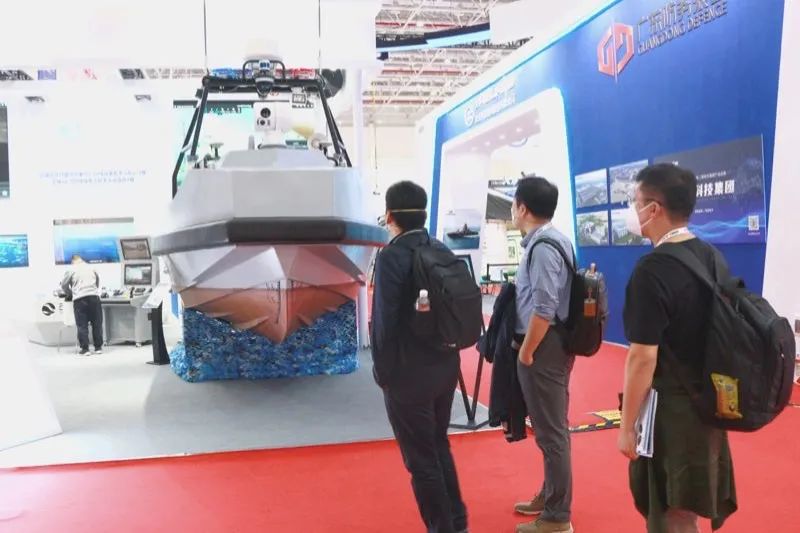 云洲智能展出的两型海防级无人艇实艇——L30“瞭望者”警戒巡逻无人艇、M75“守护者”安防巡逻无人艇。