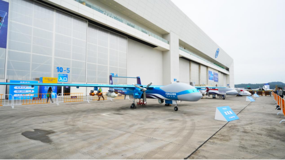 本次航展,腾盾科创旗下双尾蝎、混江龙、没羽箭等系列高端智能飞行器真机震撼亮相。其中展出的双尾蝎人工影响天气型无人机今年屡次在人影作业实战应用场景中创造了佳绩,标志着我国大型无人机行业发展进入了市场应用快车道。