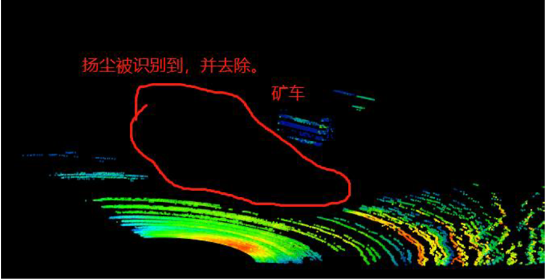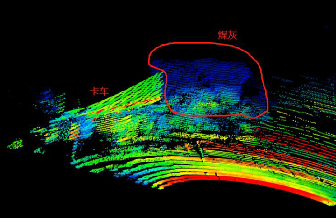 可以从点云图中看出,镭神智能激光雷达可以识别并去除大片的灰尘,减轻上位机滤除的负担;当中远处物体没有被煤灰遮挡时,仍然可以检测到中远处物体。