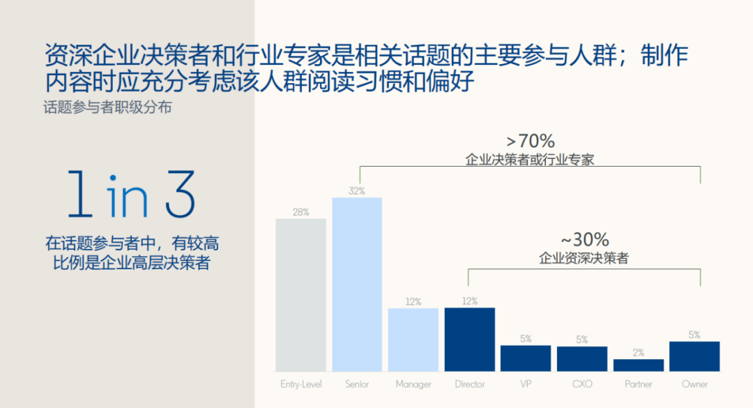 领英拥有多达8.75亿用户,覆盖全球200多个国家和地区。同时,领英还是一个连接全球商业机会的平台,拥有超过5900万企业用户。自2014年正式进入中国市场以来,领英一直为中国出海企业服务,拥有非常丰富的经验。据领英内部数据显示,领英平台2021年上半年,针对智能制造相关话题互动和点击量就已达到2.2+亿,重要的是参与相关话题的主要人群是资深企业决策者和行业专家。