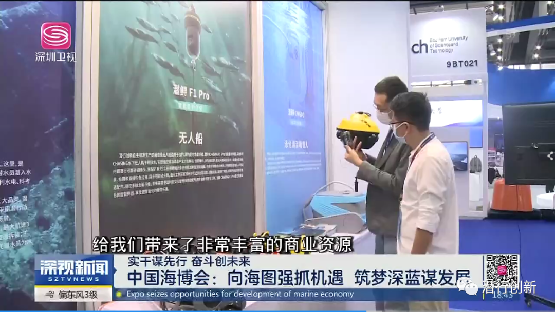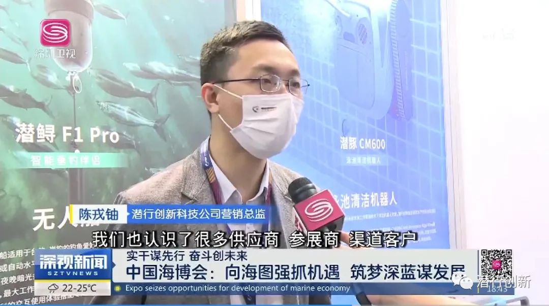 潜行创新营销总监陈戎铀在展会上接受了深圳卫视的采访。他认为,水下机器人或智能硬件是一个万亿元级的产业,但目前产品还不能满足市场需求;同时,得益于国内完整成熟的供应链体系,国产品牌比国外厂商产品性价比要高很多,使得公司产品作为民族品牌能够扬帆出海,在全球市场上占有一席之地。