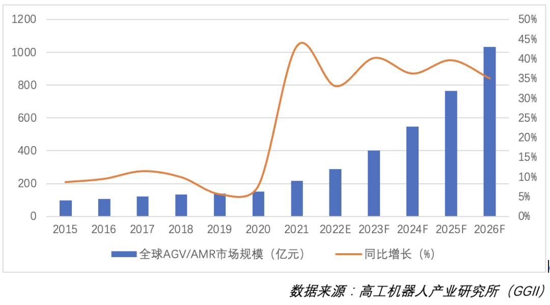 注:本报告中移动机器人包含了AGV及AMR,在国内广义上的认知都叫AGV机器人。