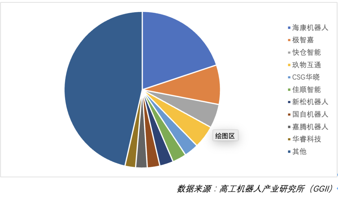 2021年,移动机器人企业整体表现不错,多数企业订单增长达超100%。GGII数据显示,中国AGV/AMR市场整体集中度不高,仍属于竞争型市场,CR10=53.65%(即前10家AGV/AMR厂商市占率之和为53.65%),海康机器人在国内市场份额为19.88%,在国内占据绝对的龙头地位;其次是极智嘉,市占率8.15%;其余AGV厂商市占率均在5%以下。