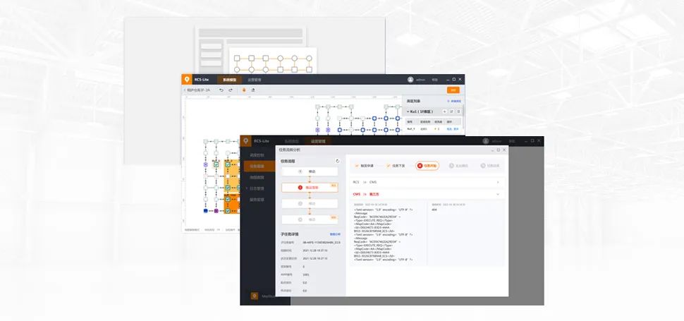 在AMR核心任务处理单元中,呈现全链路任务流转图,将任务从下发到完成的所有交互信息直观展现,让现场实施运行更高效。