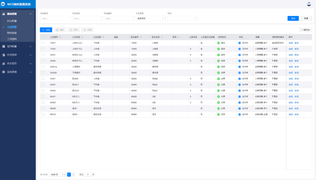 支持管理、展示机台缓存库位的物料信息,包括但不限于物料的呆滞时间,物料静置状态,物料号等属性和状态信息,为机台匹配需求物料做数据支撑