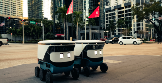 这两家公司还在测试一个 "智能城市 "的概念,在邻近的公园、公寓和住宅内进行星巴克商品的户外配送。此外,三菱、Cartken和其他公司正在研究在一栋多层办公楼内的送货服务。