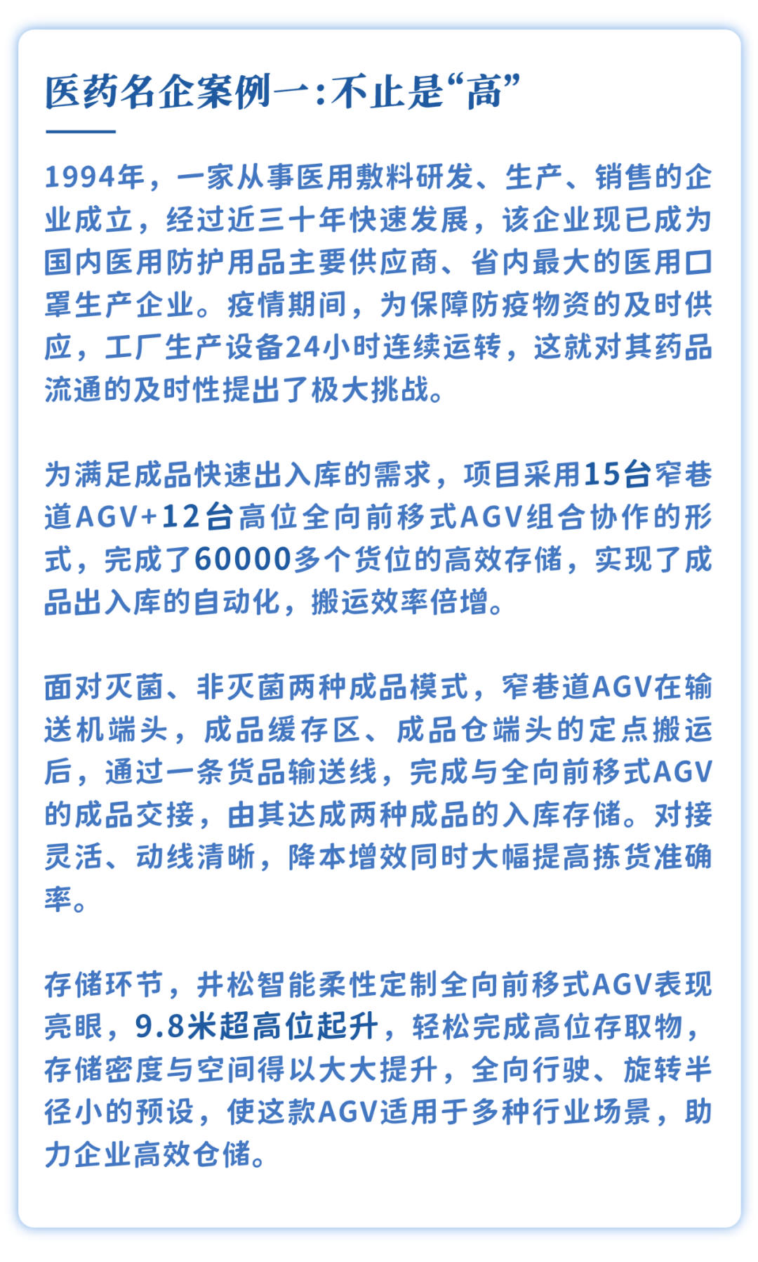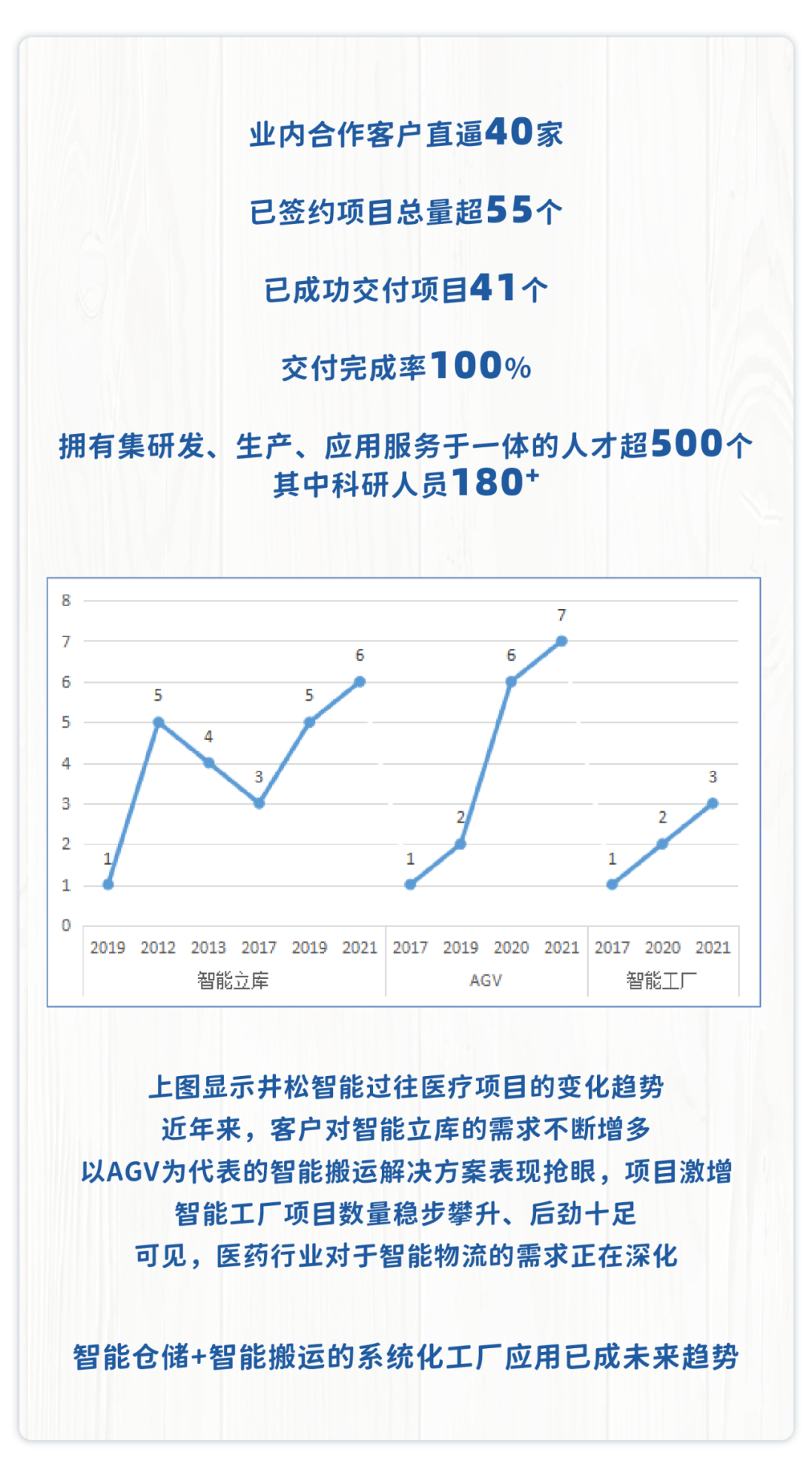 井松成立于2007年,是国内领先的智能物流系统集成商与物流装备制造商,主要从事自动化立体仓库及企业内物料输送系统等软硬件系统的研究开发、规划设计、安装实施与技术服务等。