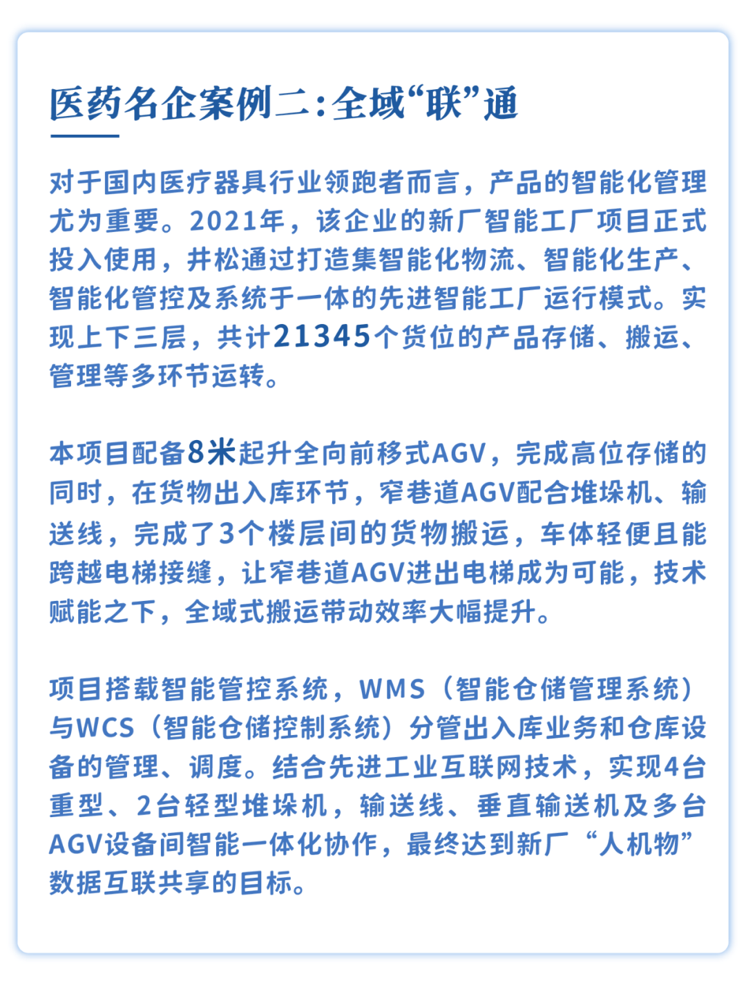 曾先后与小松集团、swisslog等全球著名的物流企业开展技术及业务合作,在消化国外先进技术的基础上开发了堆垛机、穿梭车(RGV)、空中悬挂小车(EMS)、激光导航无人小车(AGV)、智能托盘车、桁架机器人、移动视觉导航机器人、自动化分拣系统及WMS、WCS、MES等自动化物流管理软件,拥有完整的物流装备产品线。