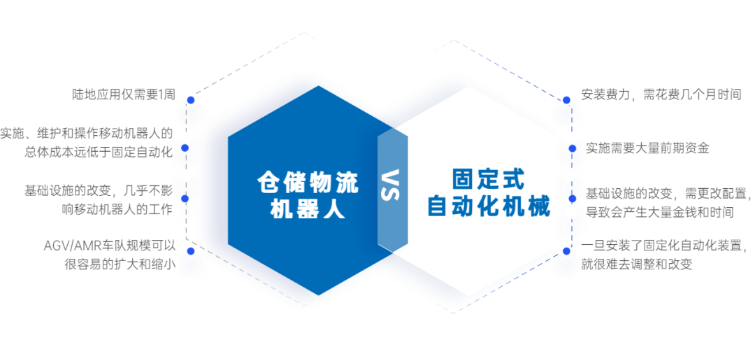 在仓储物流机器人大范围引入仓储物流系统使用之前,许多仓储都使用固定式自动化机械来提高,弥补仓储物流效率问题。然而随着互联网经济的推动下,且像双十一这样的电商活动越来越多,经常会出现物流仓储爆仓现象,仓储物流机器人技术的应用优势就大大的体现出来。