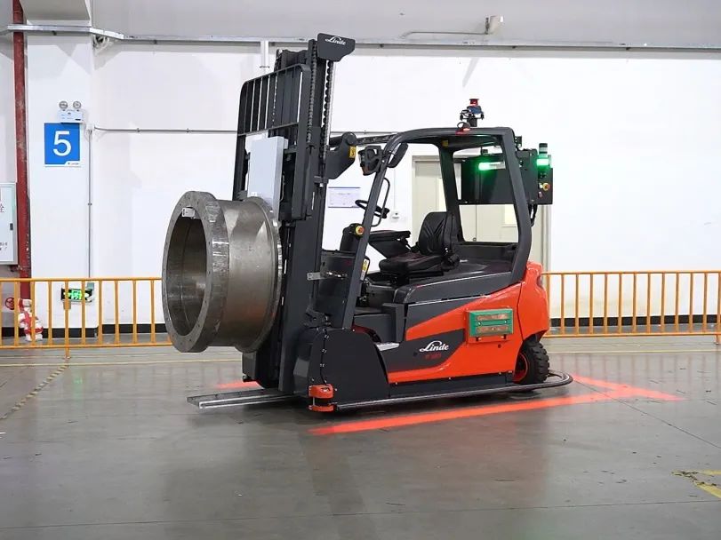 佛山设备制造企业生产车间工序繁杂,库位数量多,运用平衡重式叉车E30替代人工叉车进行环模转运,采用定制的叉臂,配置用于复核物料信息的扫码枪。取货时叉车门架后仰设置,避免在运输过程中环模滑落,搬运更安全高效。
