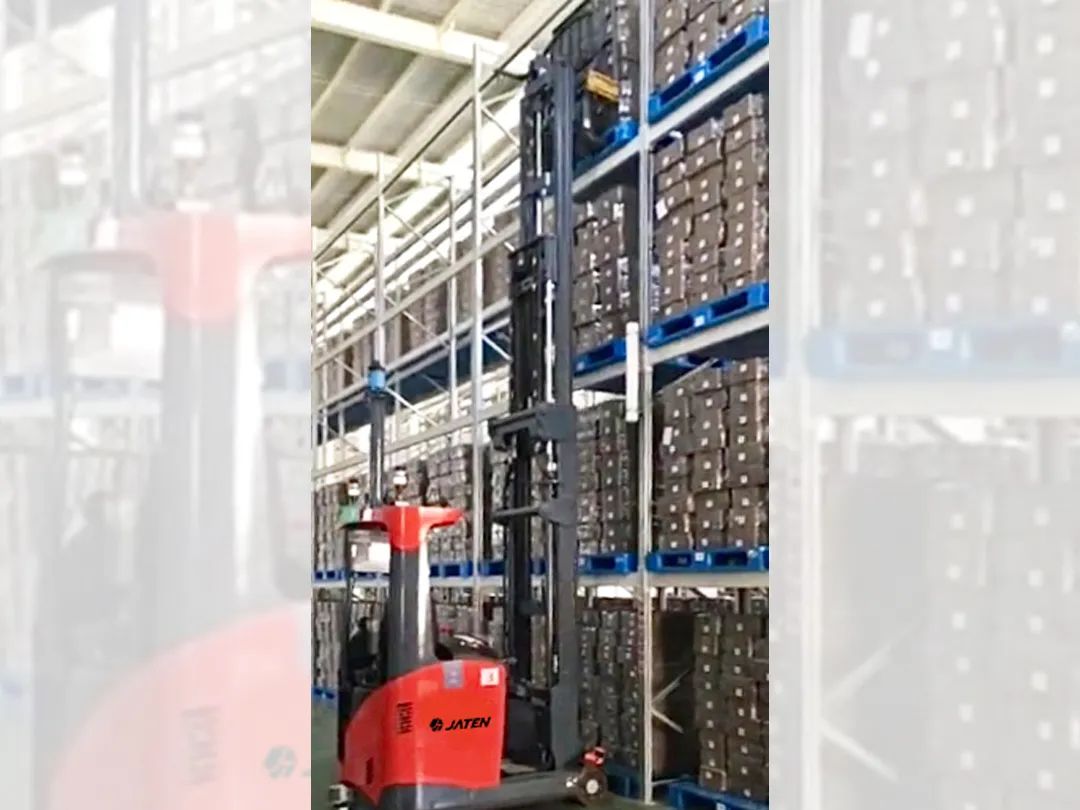 四川知名家具企业车间内有20台托盘叉车JTS-T30-3000在交替工作,实现打造家具物流中心自动化立体仓库。