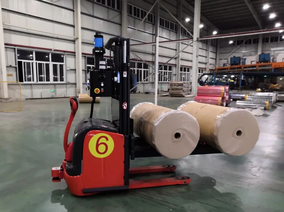 浙江某薄膜企业某车间,共40条产线,搬运物品呈圆柱状,嘉腾为其提供了托盘堆高车LN1600-L16的解决方案,经过改造后的叉臂,能防止薄膜母卷在运输过程中滚动;在上、下料点配备了呼叫装置,实现物料的出入库和异常品的人工呼叫智能搬运。