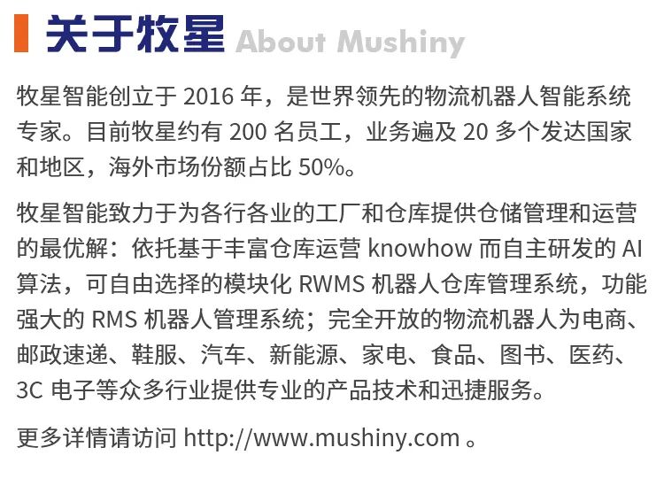 持续丰富产品线与技术迭代:牧星即将发布颠覆性的全能型货到人解决方案MIX,该解决方案具备更高的存储效率及吞吐能力、更少的搬运次数、更高的投资收益,请大家敬请期待。