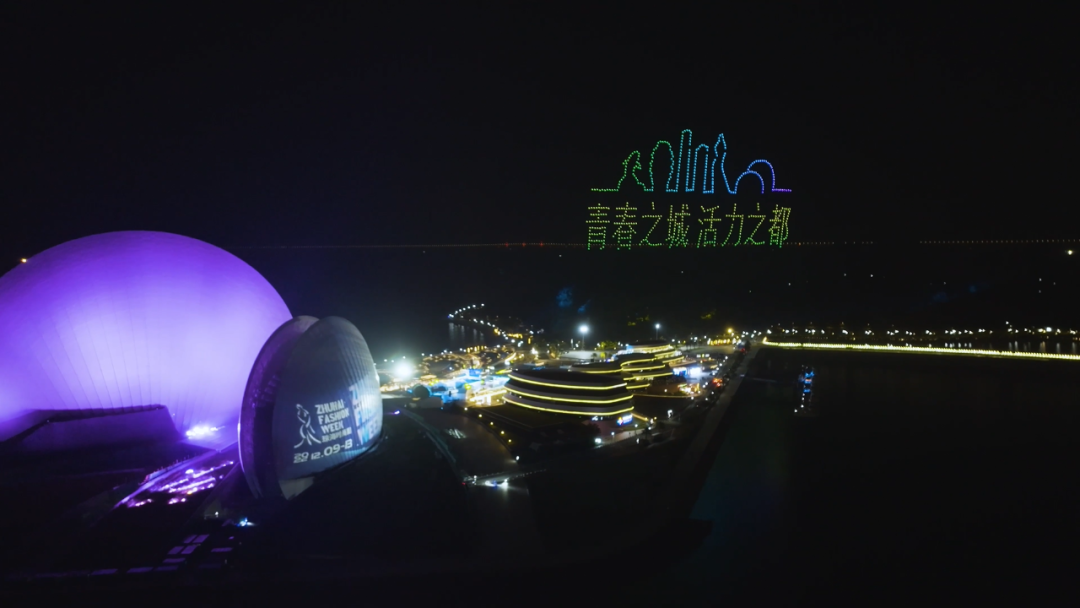 摩登女郎、潮流服饰、时尚舞步……各种彰显时尚潮流的表演画面纷至沓来同时,此次无人机表演还充分融入了“珠海元素”