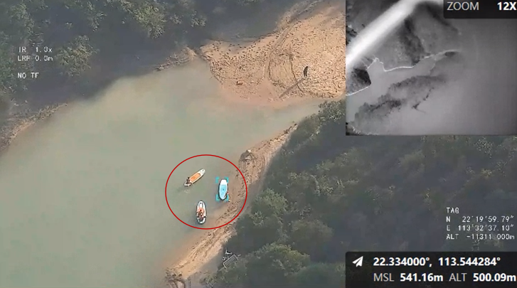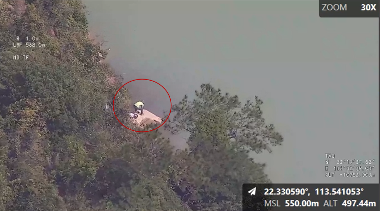无人直升机发现在水库中违规钓鱼人员