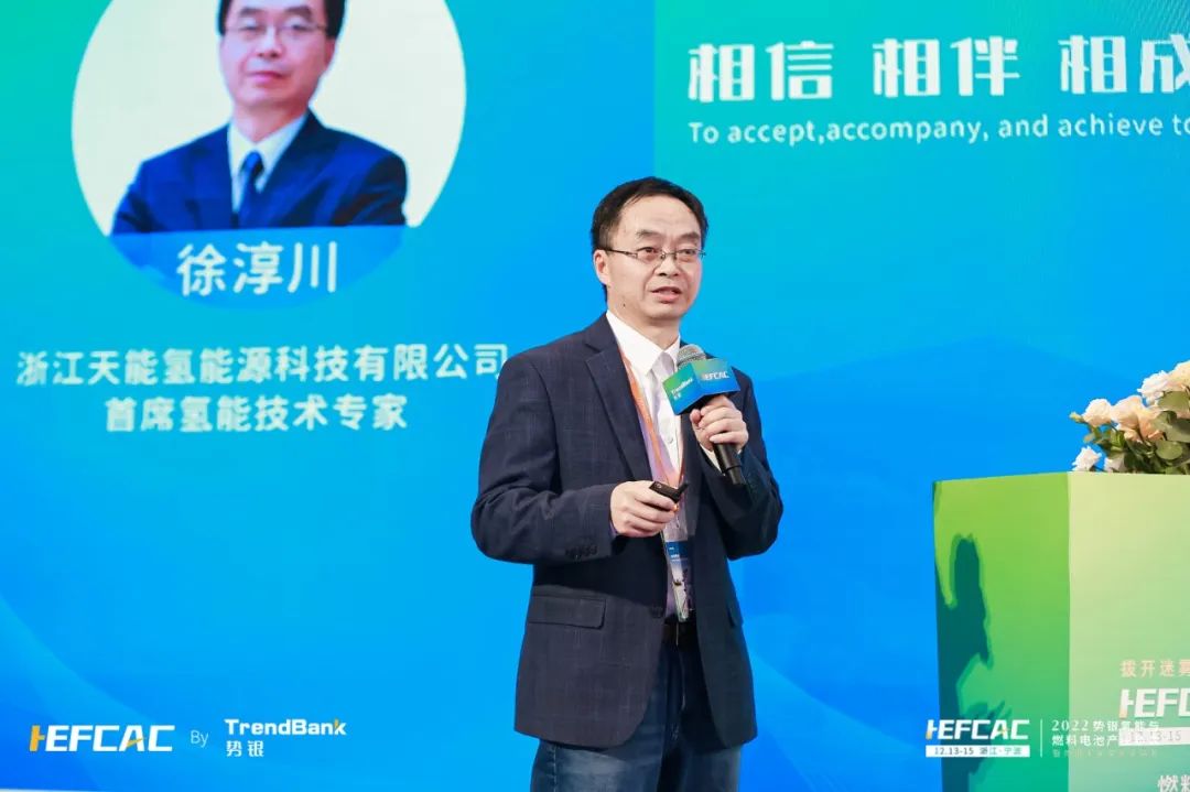 重卡与工程机械是天能氢电重点关注与布局的新赛道。天能氢能源首席氢能技术专家徐淳川在燃料电池系统专场论坛上发表主题演讲。徐淳川认为,成本控制和产品性能提升是重卡燃料电池系统亟待突破的难点,并基于目前技术,提出了可行性策略,指出可以通过电堆、控制系统和额外设计的改进升级,实现降本增效的目标。