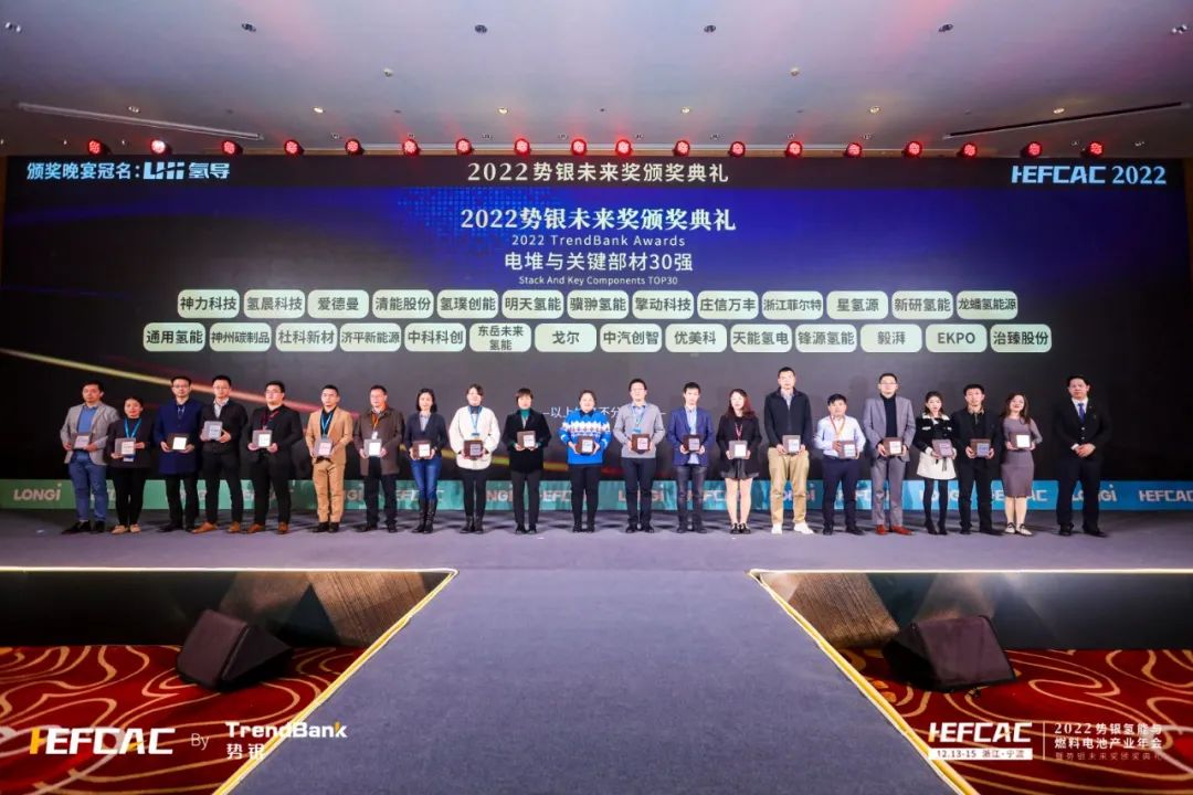 12月13日-15日,2022势银氢能与燃料电池产业年会在宁波举行。会上,天能氢电凭借今年以来在技术创新、产品设计研发、生产工艺优化、应用推广上一系列重大突破,荣获年度技术力奖,并入围电堆与关键部材30强、燃料电池产业50强。