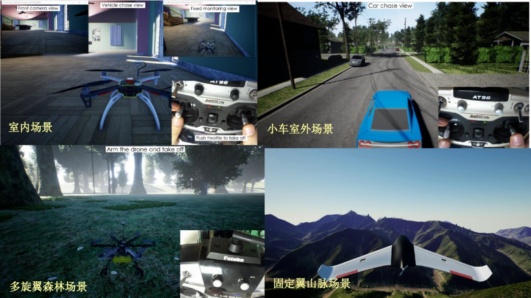 本模块模拟真实的无人载具系统,包含无人载具的动力学模型、运动学模型与底层控制模型。建立统一建模框架,在整个建模框架中,首先对机身系统进行高精度建模,然后在仿真计算机中实现,最后连接控制系统软件或硬件,构成软件在环仿真或硬件在环仿真闭环。