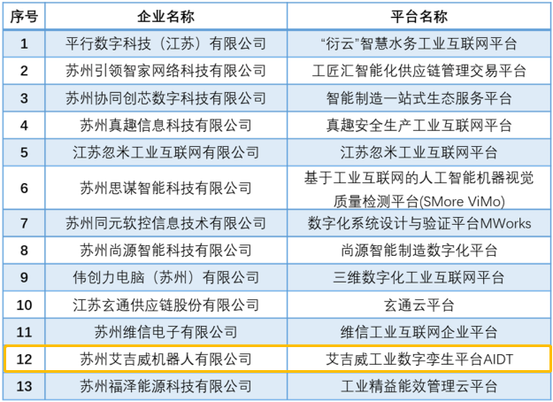 近日,苏州艾吉威机器人有限公司“AIDT工业数字孪生平台”,获评苏州市第五批工业互联网重点平台企业。
