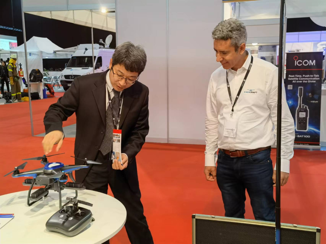 这是意大利规模最大的消防救援展,为期3天的展会人气火爆,包括意大利国防部、国家救援局、消防局等多个国家和地区救援部门,以及红十字会都来参展。不少客户和参展商对极客桥无人机表现出浓厚的兴趣,观看了我们在室内外的现场演示,还有客户邀请我们参加他们在当地晚间举办的消防救援应急培训。