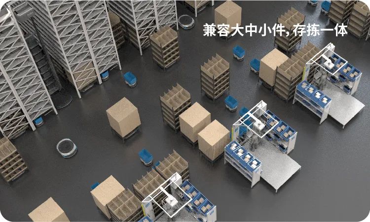解决传统料箱机器人方案无法实现的中大件存拣问题